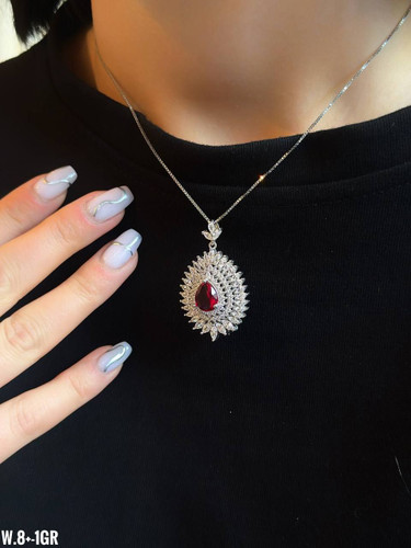پلاک جواهری نقره سنگ قرمز عیار925