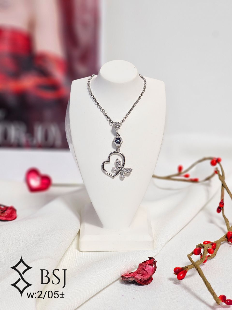 پلاک جواهری نقره طرح قلب عیار925
