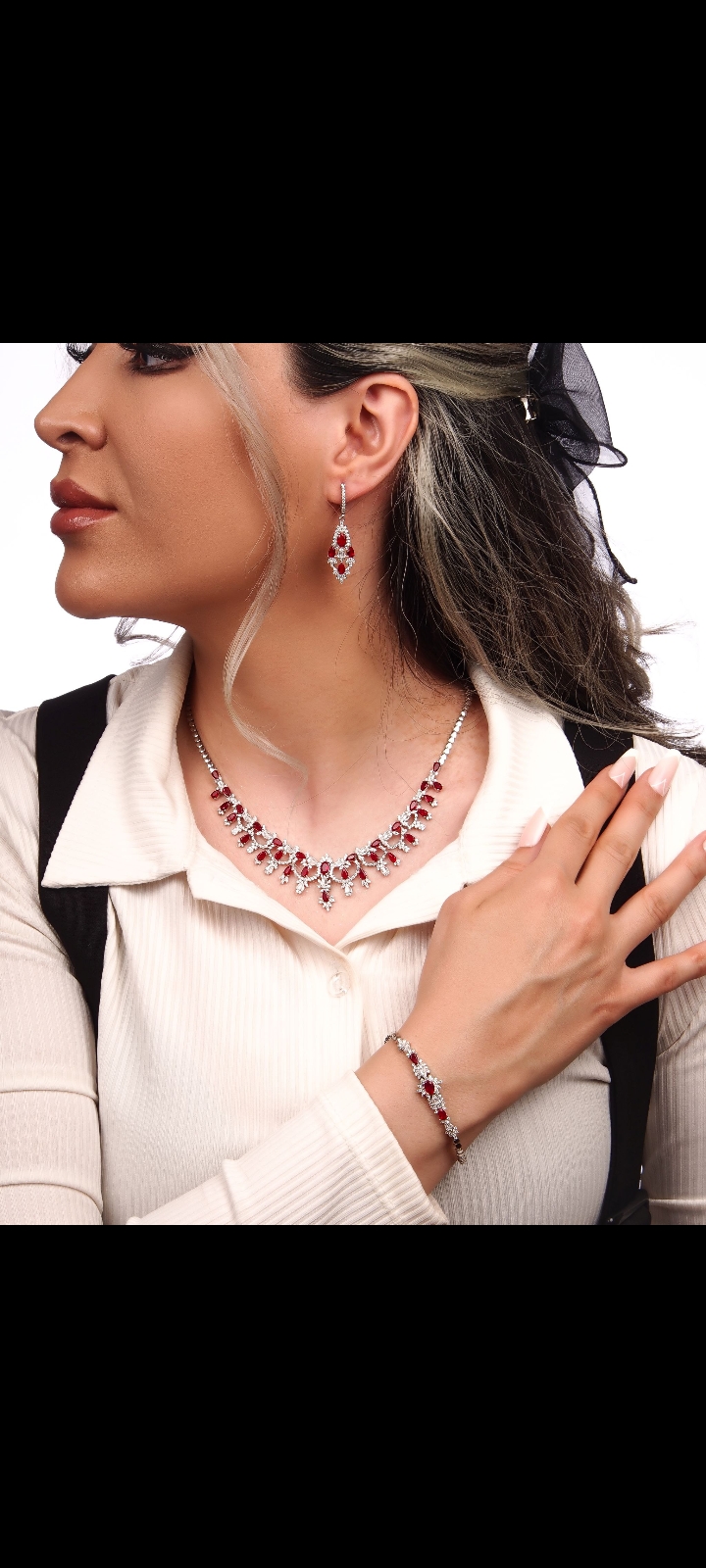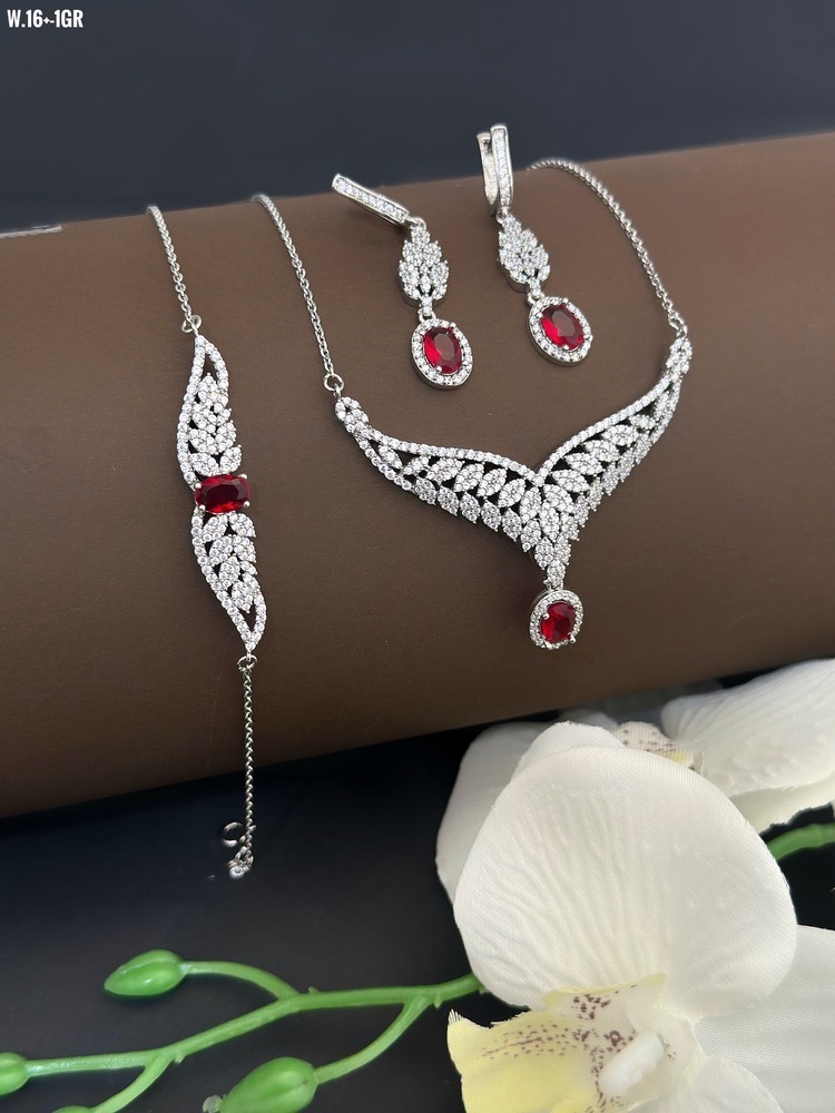 سرویس زنجیری نقره عیار925 سنگ قرمز