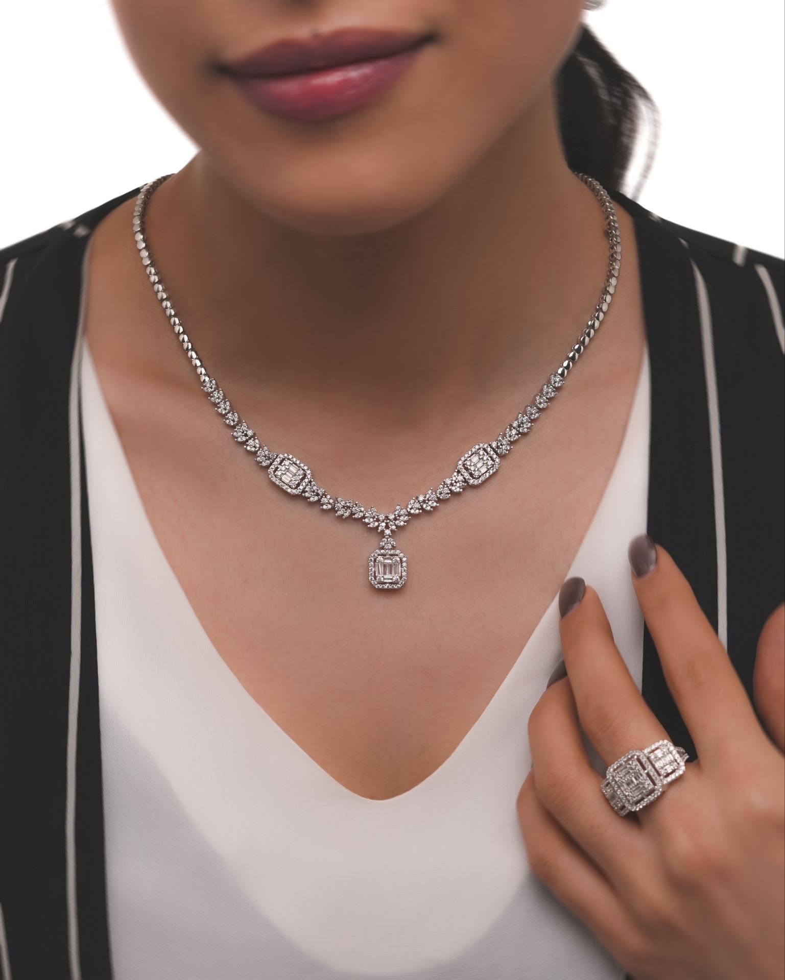 سرویس جواهری نقره ایتالیایی امرالد همراه با انگشتر