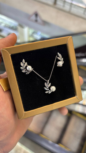 نیمست جواهری نقره طرح مروارید ایتالیایی عیار925