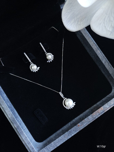 نیمست جواهری نقره طرح مروارید ایتالیایی عیار925